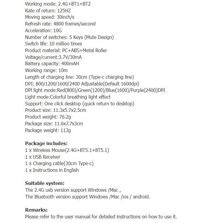 1: 2.4G+BT1+BT2 wireless the third mock examination, with high-end design, office games do not get stuck.
