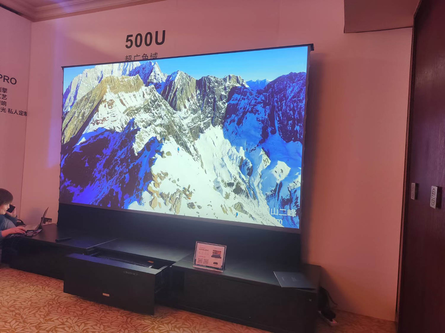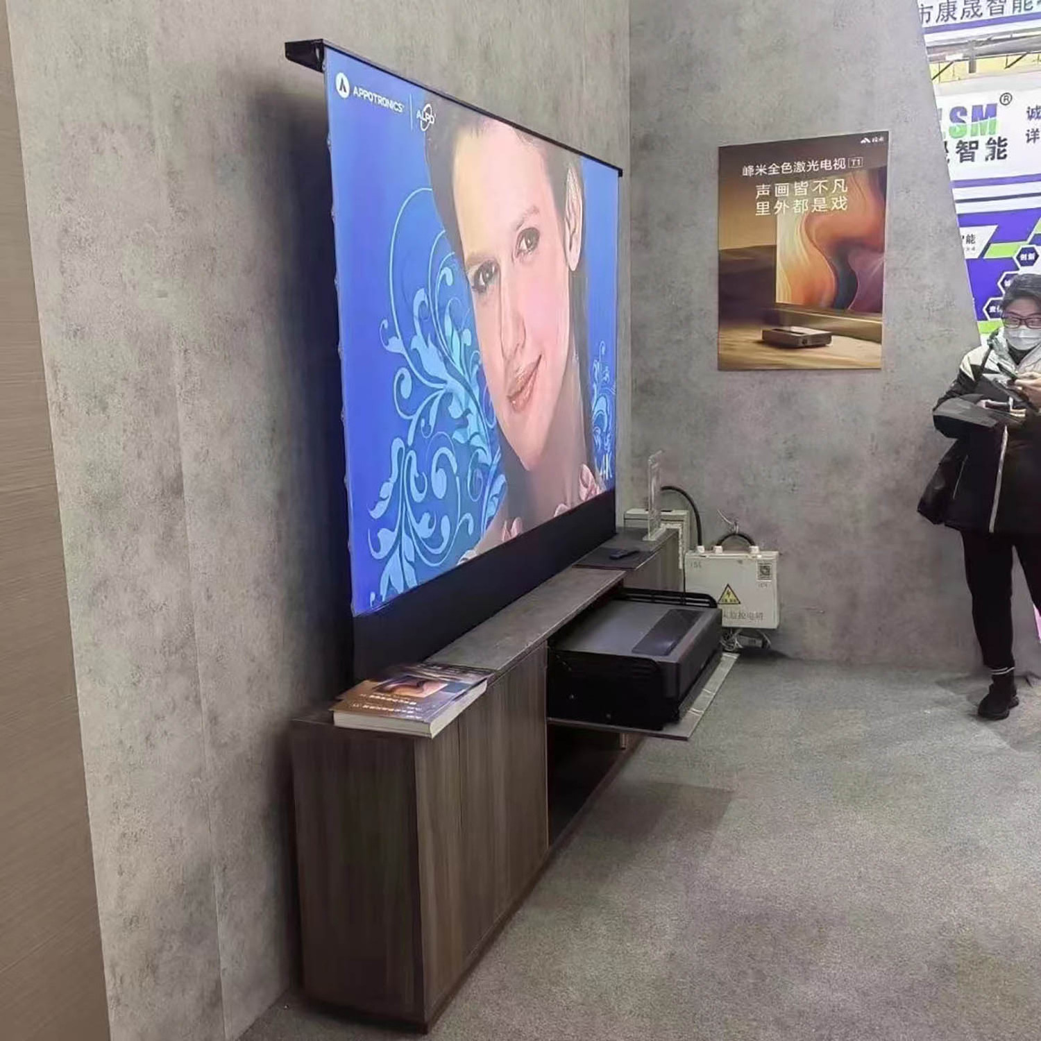 Yinzam Home Cinema 100-150 inch Electric Tension Floor Rising Screen PET Crystal UST ALR Laser Projector Screens