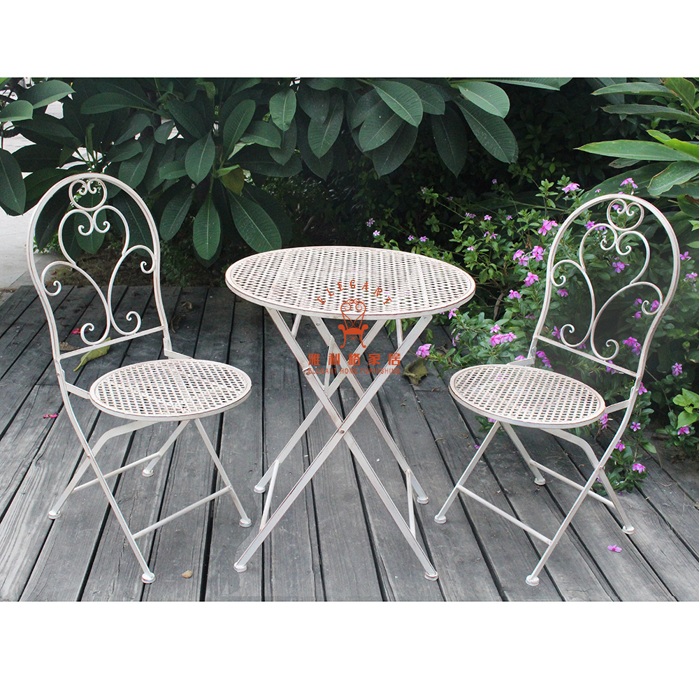 Outdoor Furniture Antique Metal Foldable Garden Chairs And Tables Bistro Patio Set