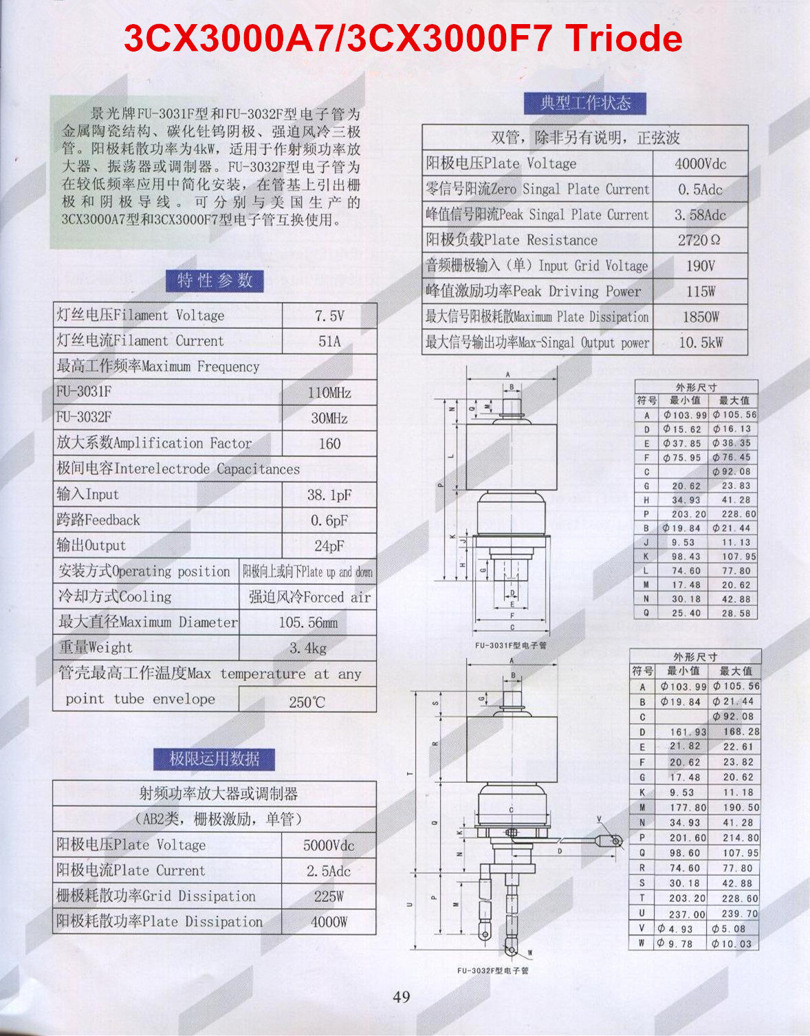 3CW20000H3 3CW30000H7 3CXH10000D3 3CXH1000H3 3CX800A7 3CX4500F3/YU108 YU148