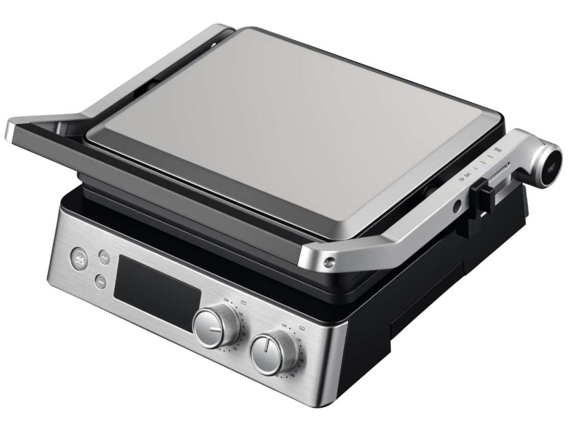 Premium Stainless Steel Smart Grill with 180 degree Flip Lid, 2 Adjustable Temp Control, Replaceable Tray & Aluminum Lift Rod
