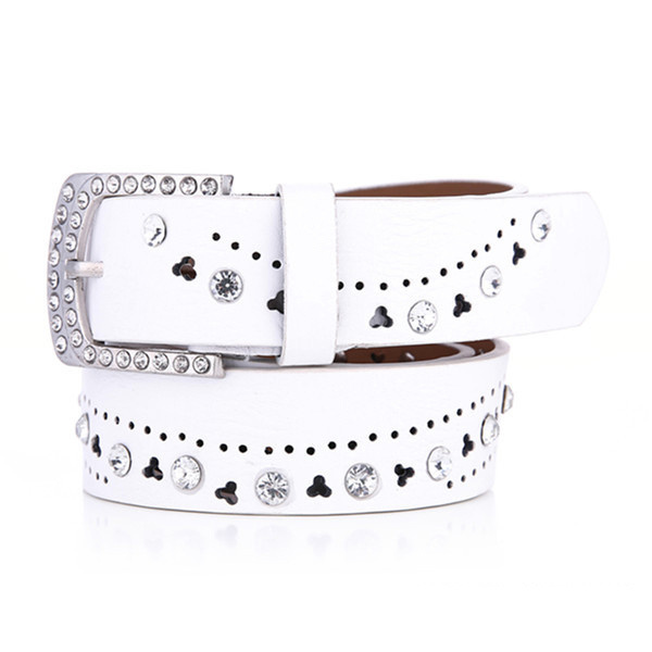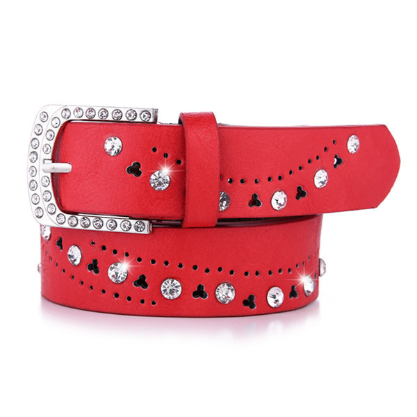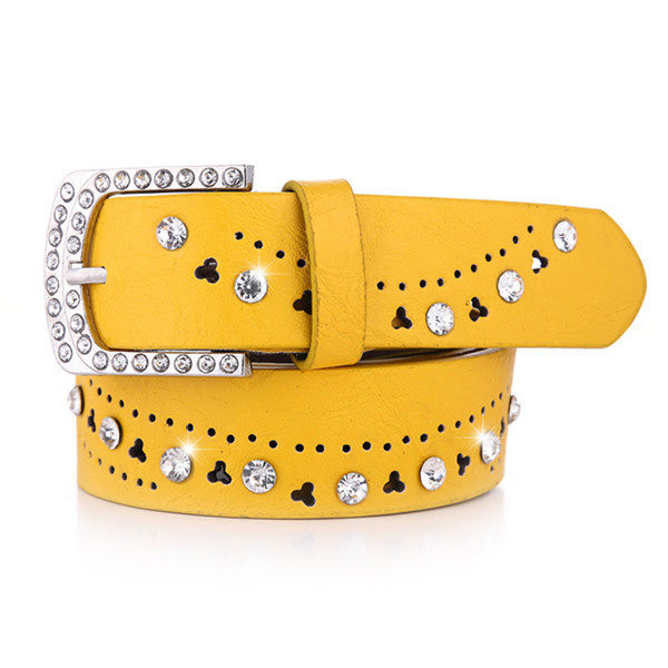 Fashion luxury womens rhinestone belt Ladies Punk Studded crystal diamond PU leather belt