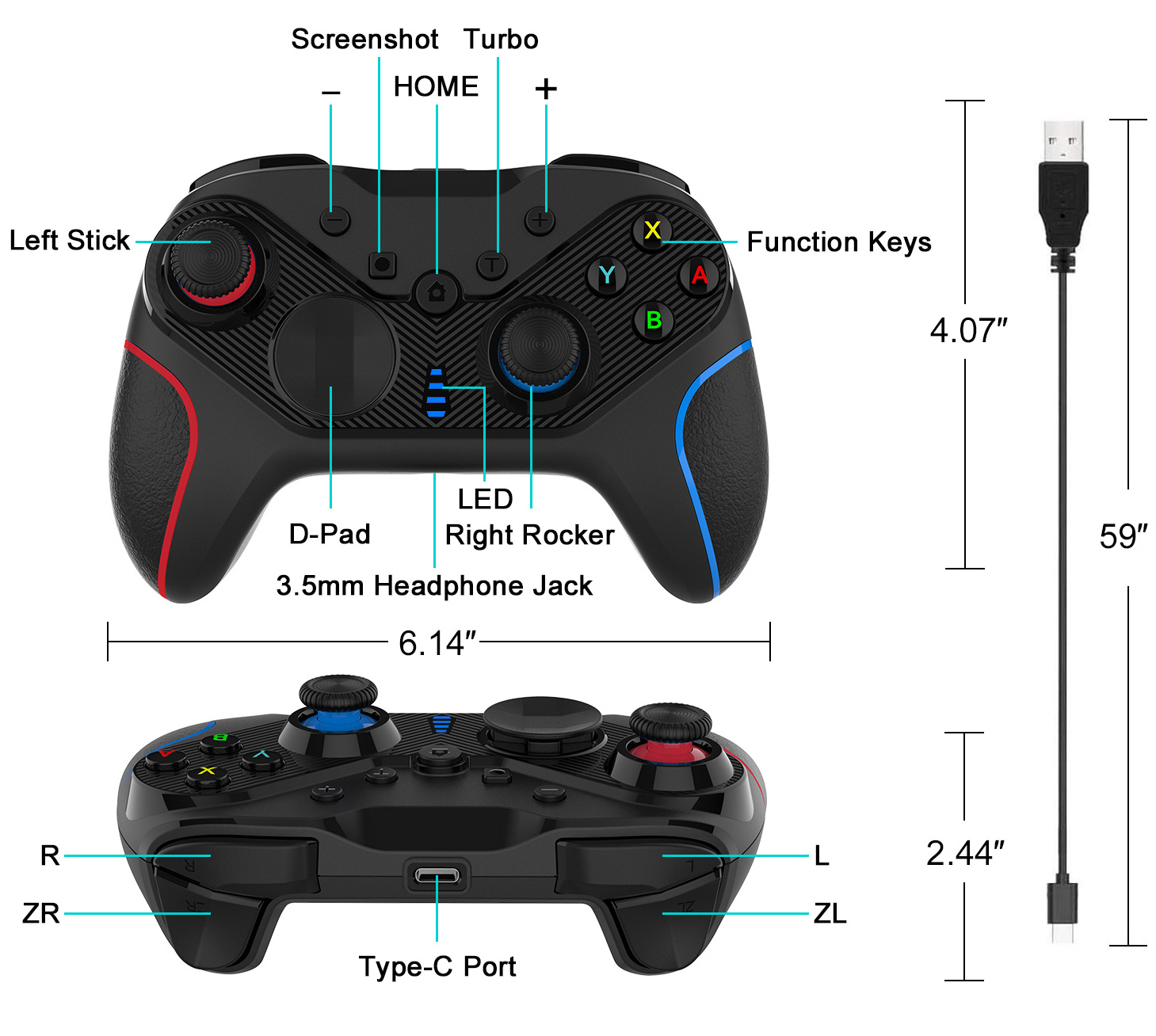 Built-in lithium battery / Type-c charging port