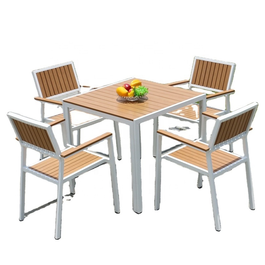Plastic Wood Balcony Chair Table Outdoor Furniture White