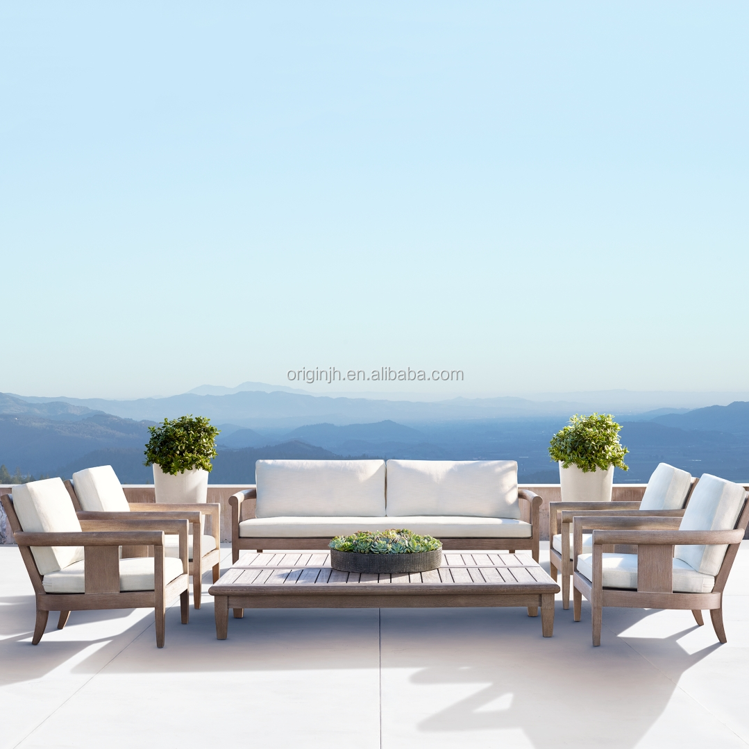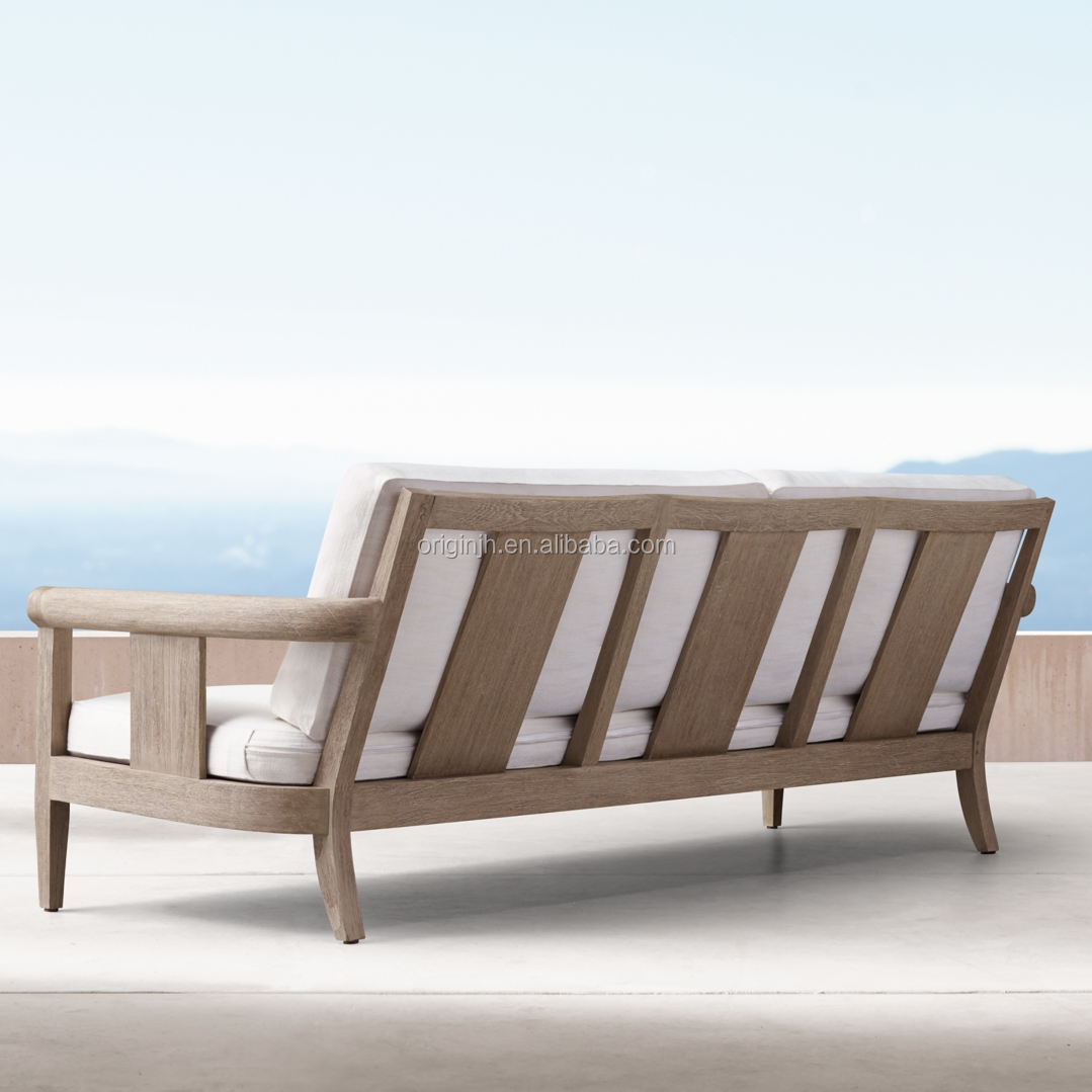 Luxury sunbrella patio relaxing curved rolled design teak wooden sofa set outdoor garden furniture