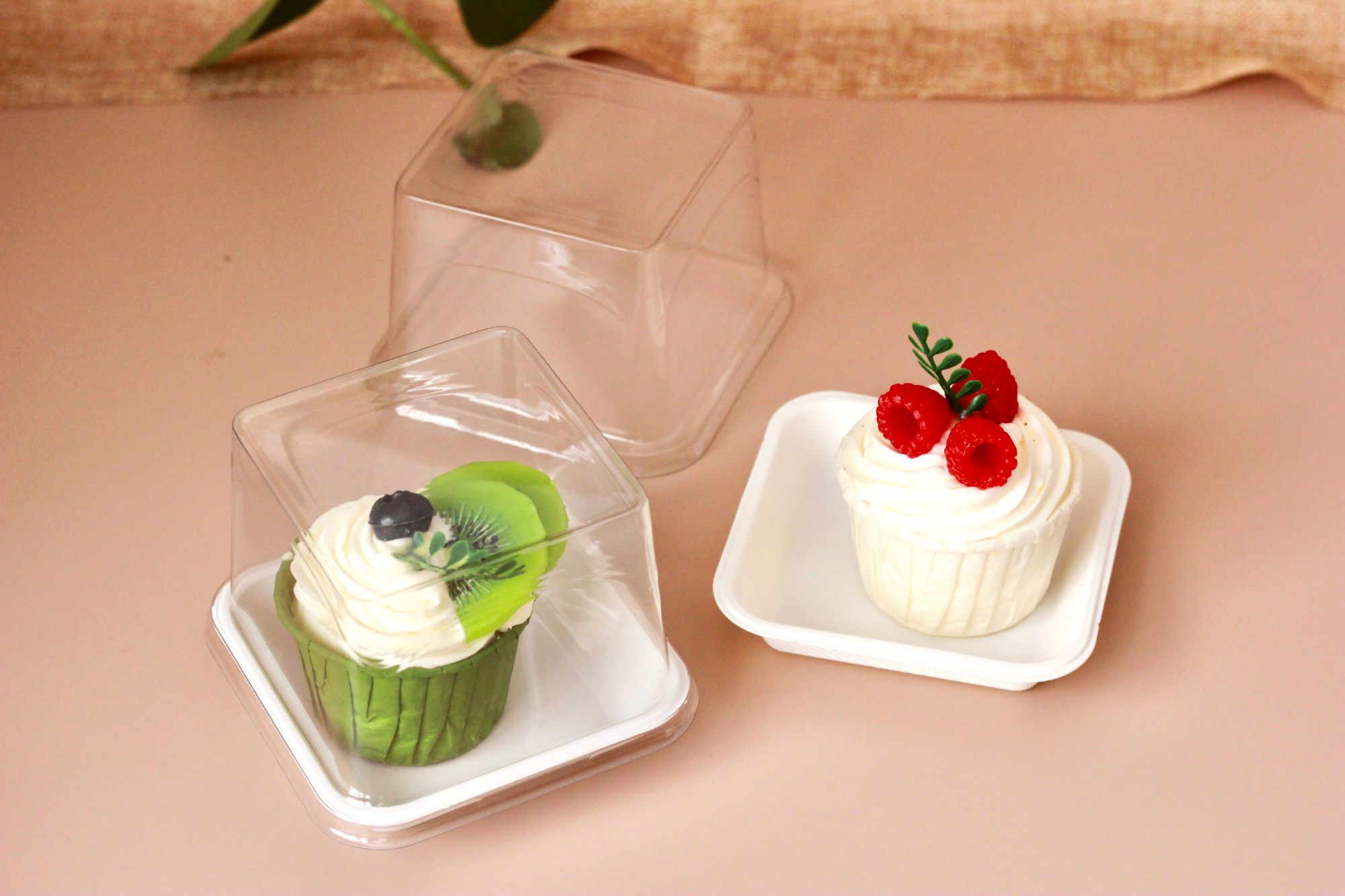 Free Sample Square Plastic white bottom with clear Lid Box for Sweet Pastry Cupcake Bakery