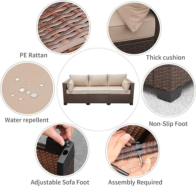 3-Seat Outdoor Brown Rattan Sofa