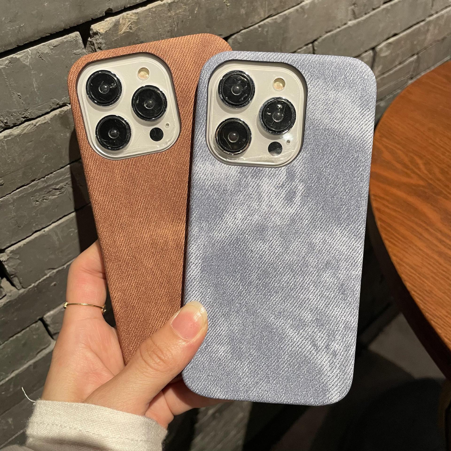 Luxury Matte Leather Fabric Case 15 14 Plus 13 12 Mini 11 Pro X XR XS Max 7 8 Plus Soft Shockproof Jeans Retro Cover