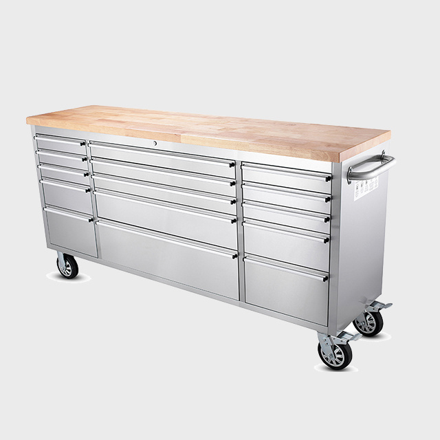72 in. 15-Drawer Mobile Workbench in Stainless Steel