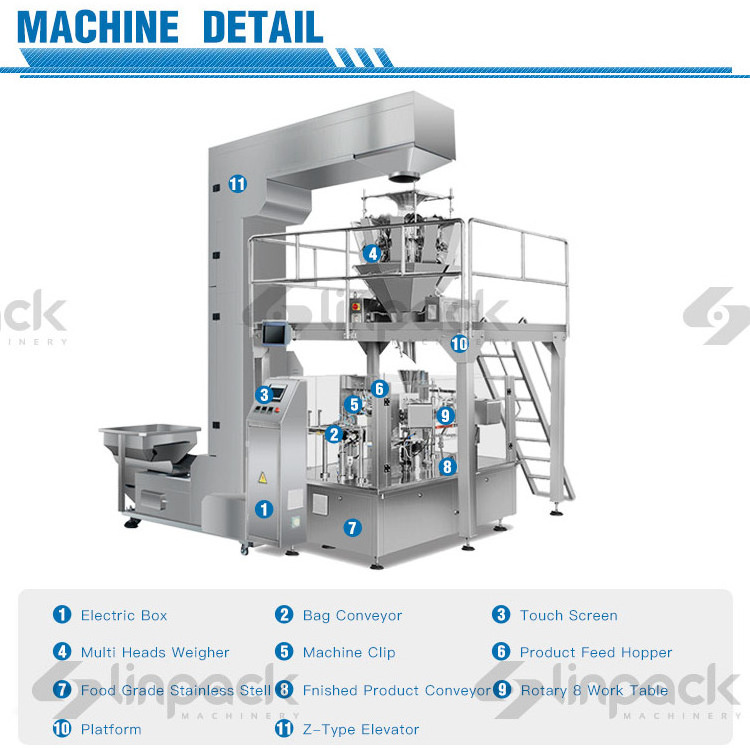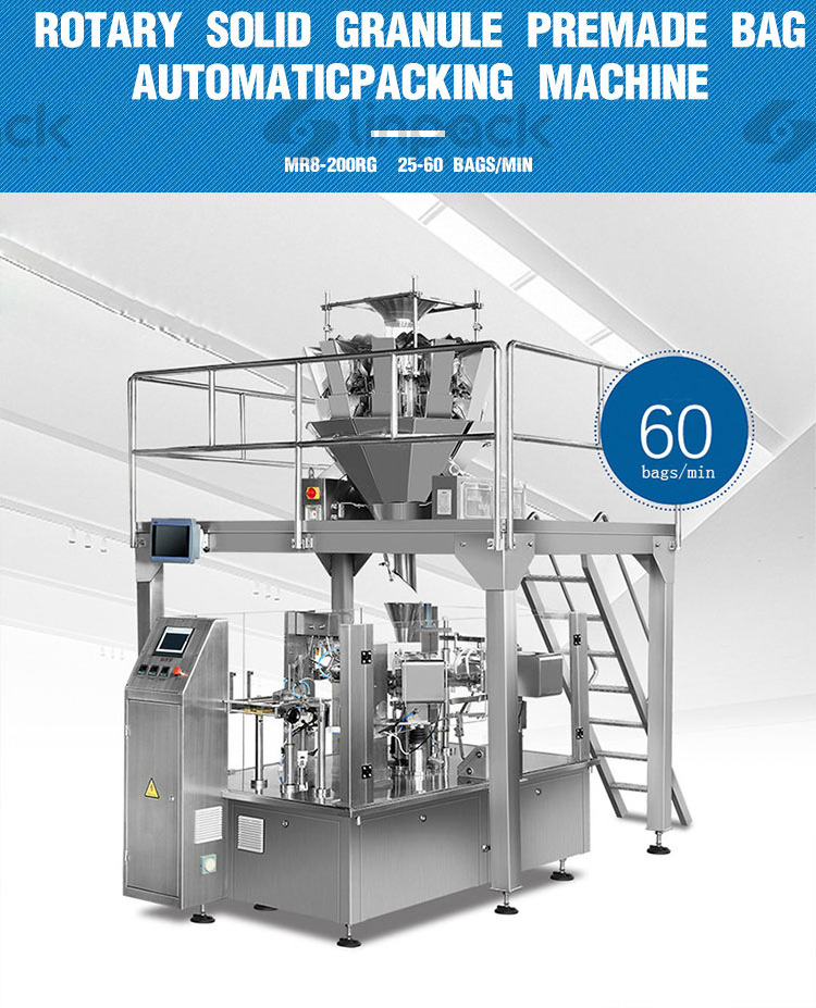 1. Suitable for large specification bags, and automatic metering, filling and sealing.