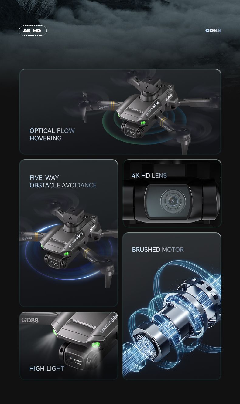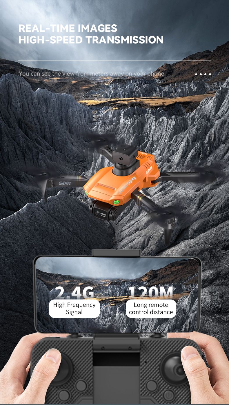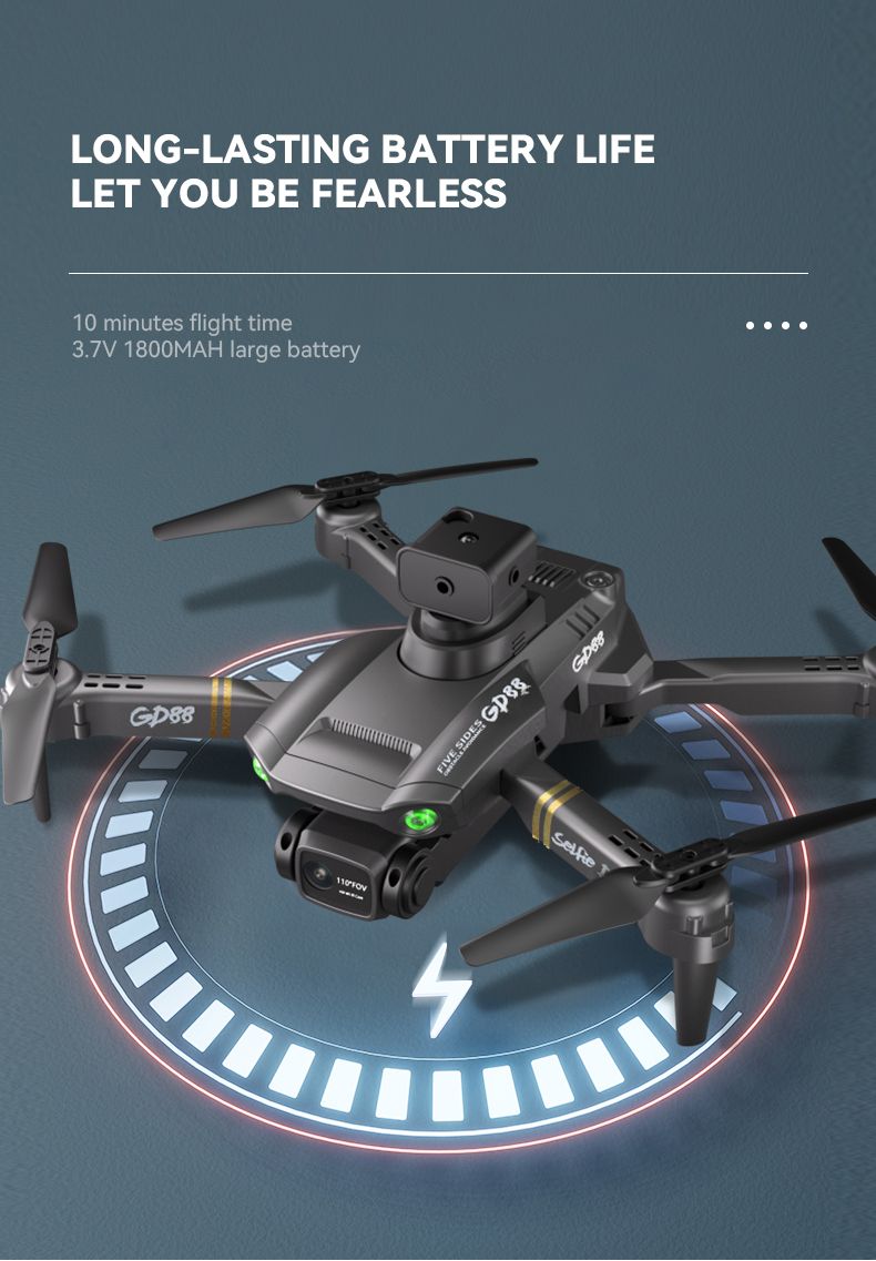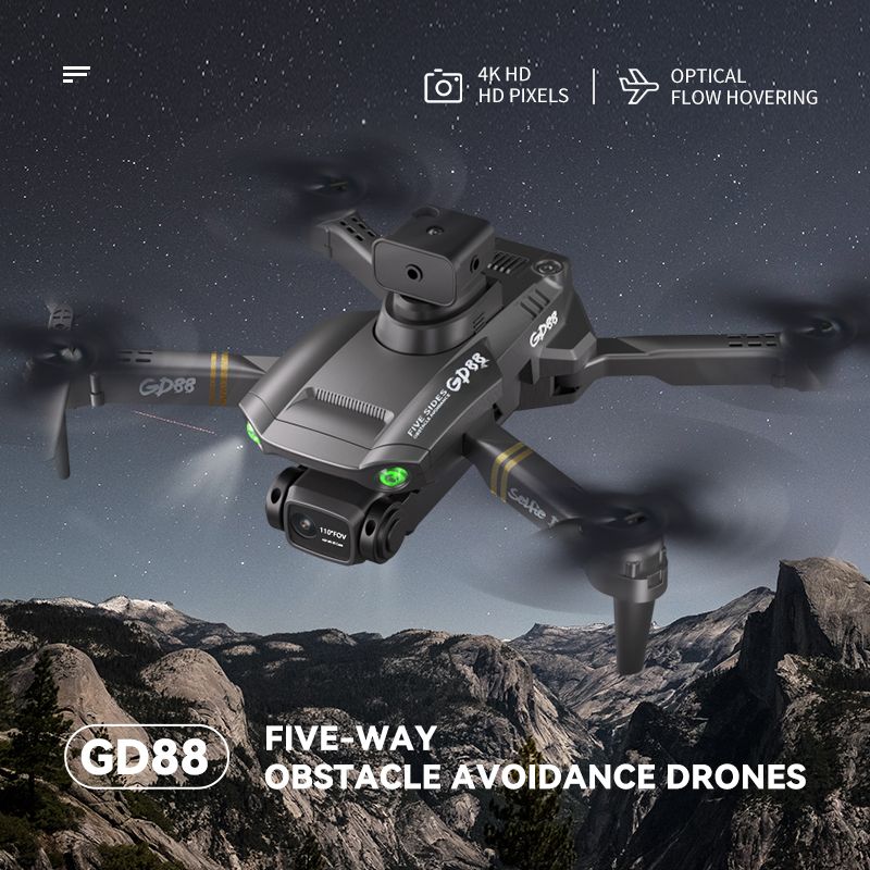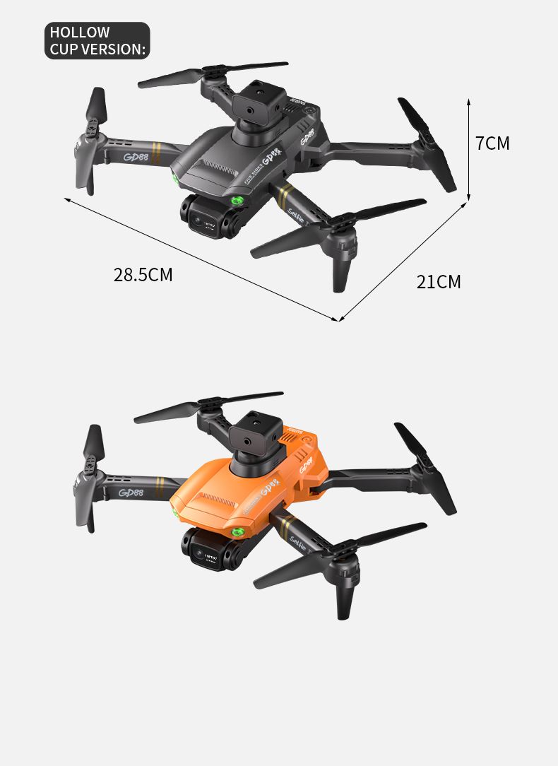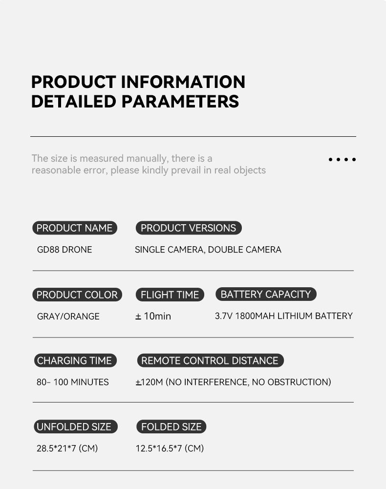 | Functions | Remote control distance: 100 metersFunctions: fixed altitude function, ultra-long flight time, six channels with gyroscope; one-key takeoff and one-key landing, 360-degree roll forward, backward, left and right, rise and fall, forward and backward, left and right side flight, steering, headless mode (with camera, additional functions: gesture photo, video, music, photo booth, voice operation, emergency stop, trajectory flight, gravity sensor, four-sided infrared obstacle avoidance, electric adjustment camera) |