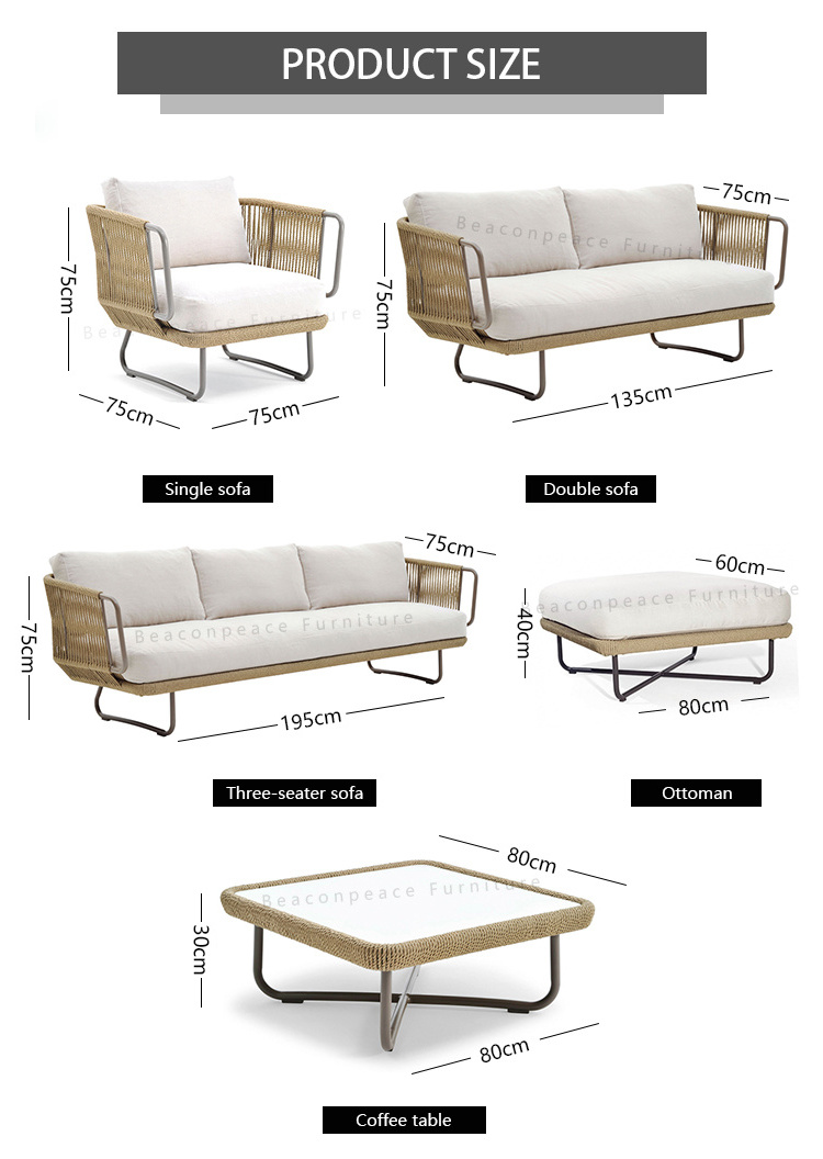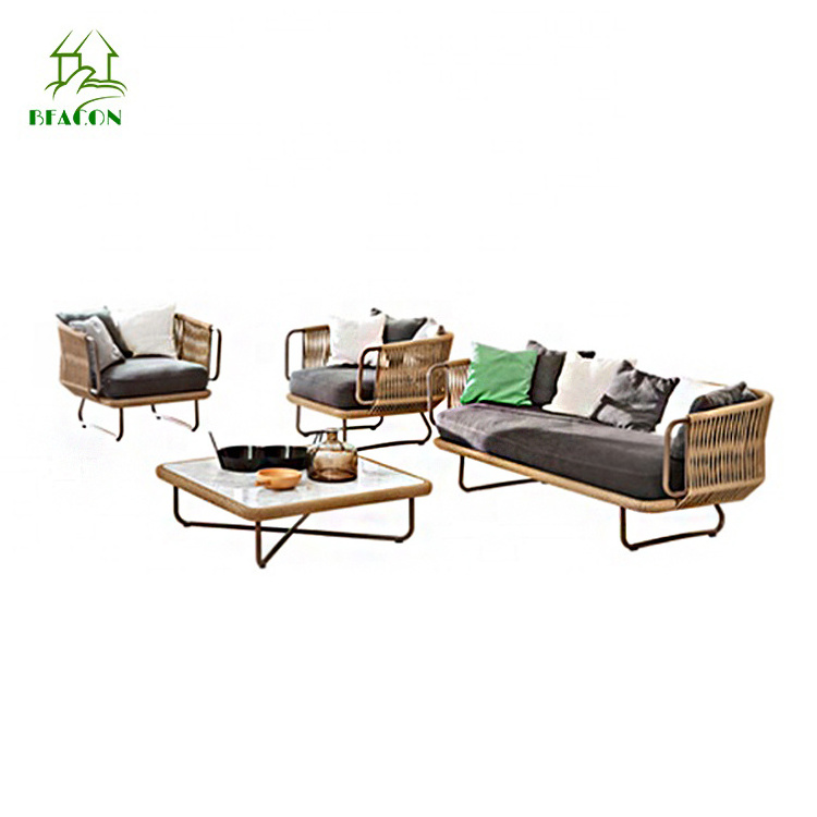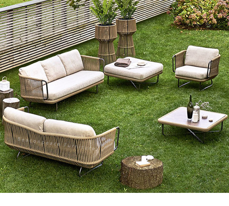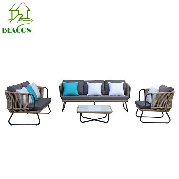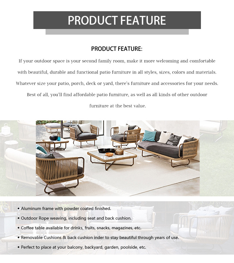 High quality leisure balcony decoration garden outdoor patio rope woven aluminum frame outdoor sofa sets