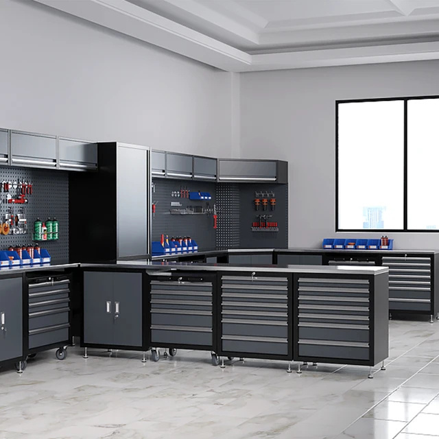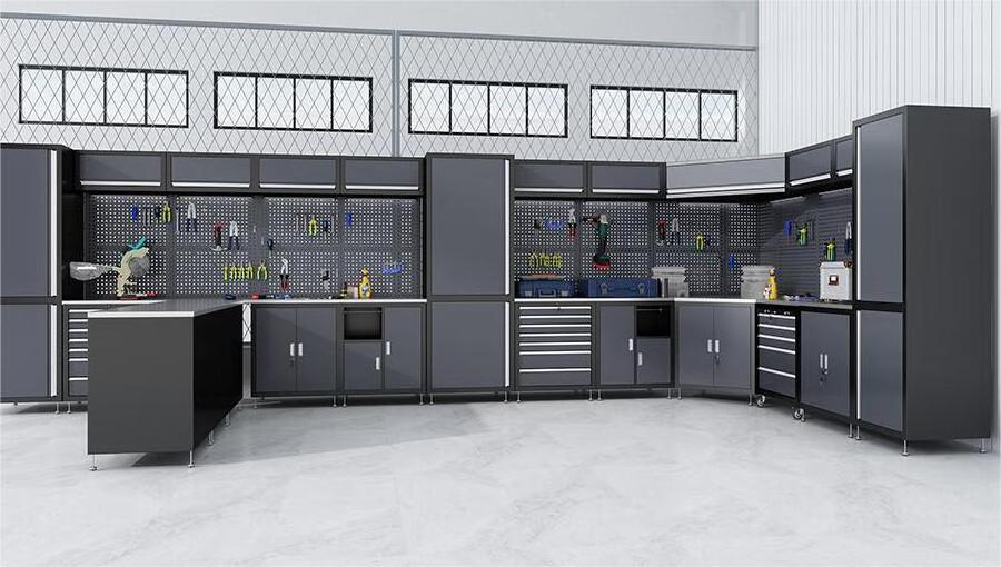 Create a versatile workspace with our garage cabinets, complete with workbenches and tool storage, making your garage a hub for DIY projects
