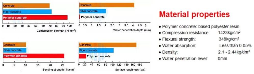 1) Polymer concrete is a durable channel with high strength and chemical resistance. It is long lasting and has no hazard to environment, so can be widely used for drainage systems.
