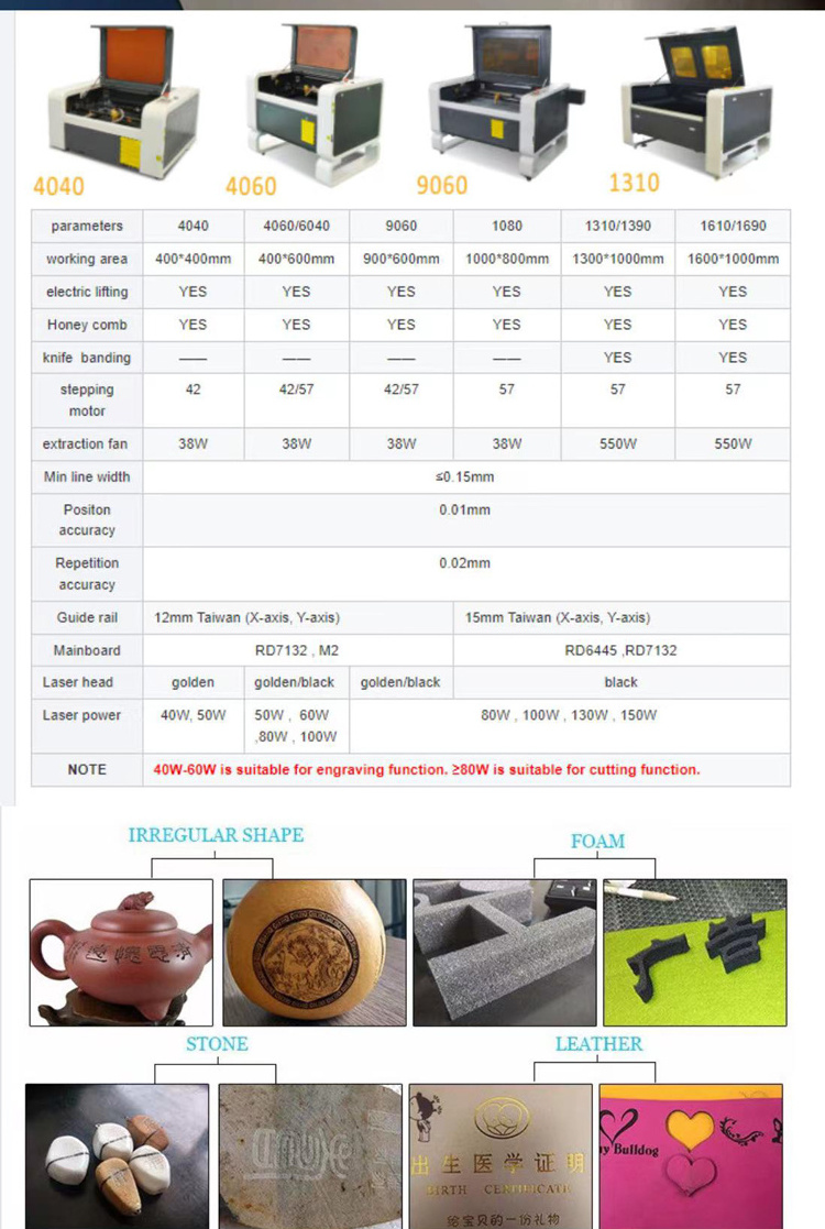 Precise engraving. Professional engraving optical lens with more stable light beam. Equipped with red light position,making locating more convenient and precise. High-quality laser tube,laser power supply, reduce the failure rate. Data output is more fully due to high-performance motherboard with anti-interference.