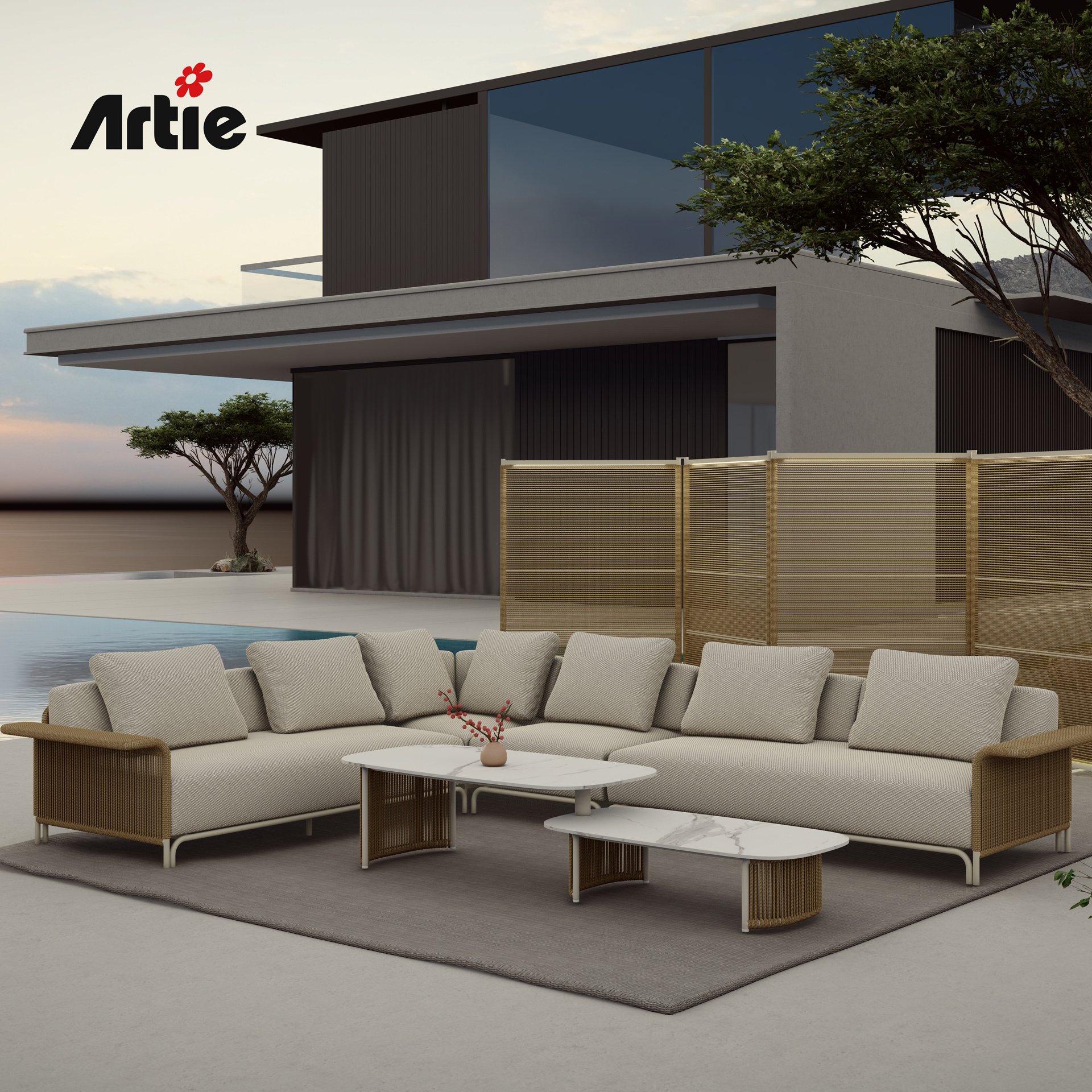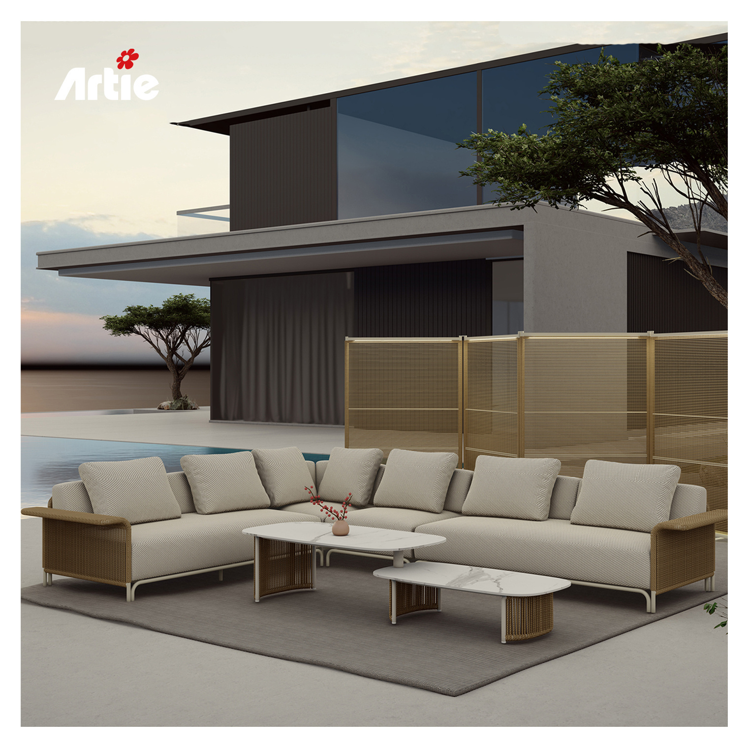 Include Maui left-armrest sofa*1+Maui right-armrest sofa*1+Maui corner sofa*1+Maui middle sofa*1+Oliver coffee table*1