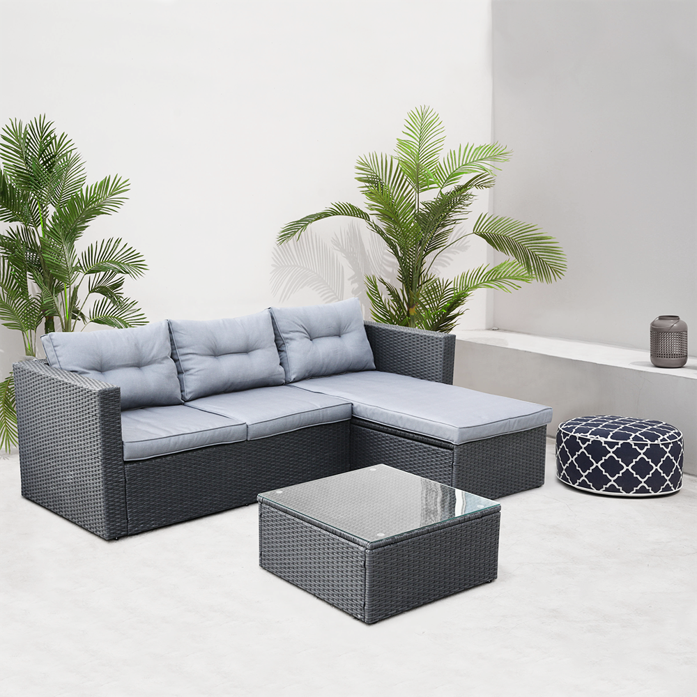 Best Seller Plastic Wicker Sofa Set Rattan Patio Furniture, Black Outdoor Pvc Rattan Furniture Manufacturers