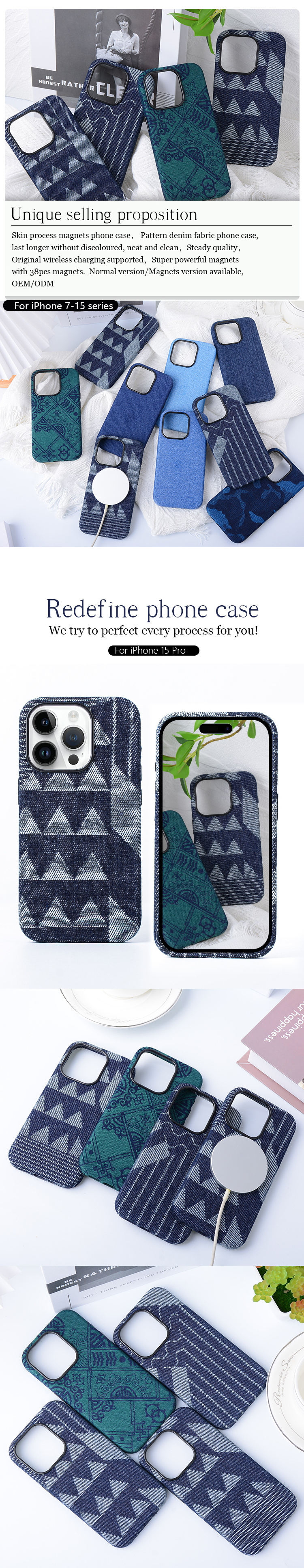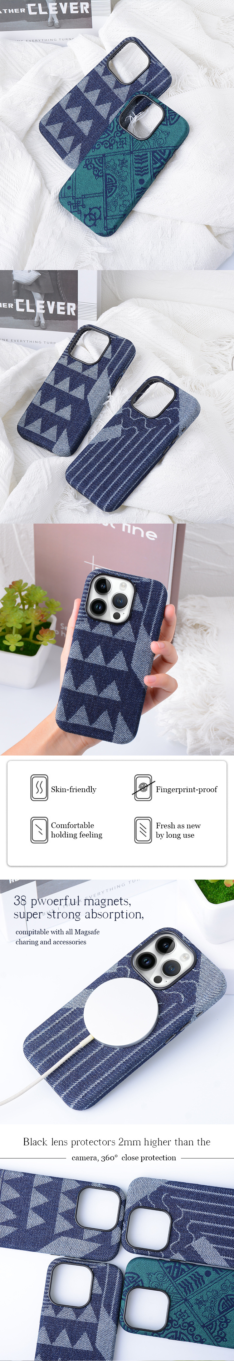 Denim jeans materials breathable durable pure colors phone case