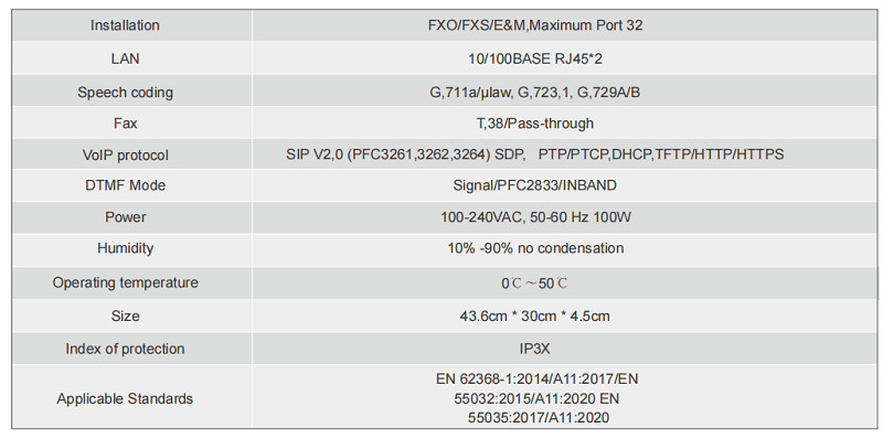 FXO/FXS/E&M,Maximum Port 32