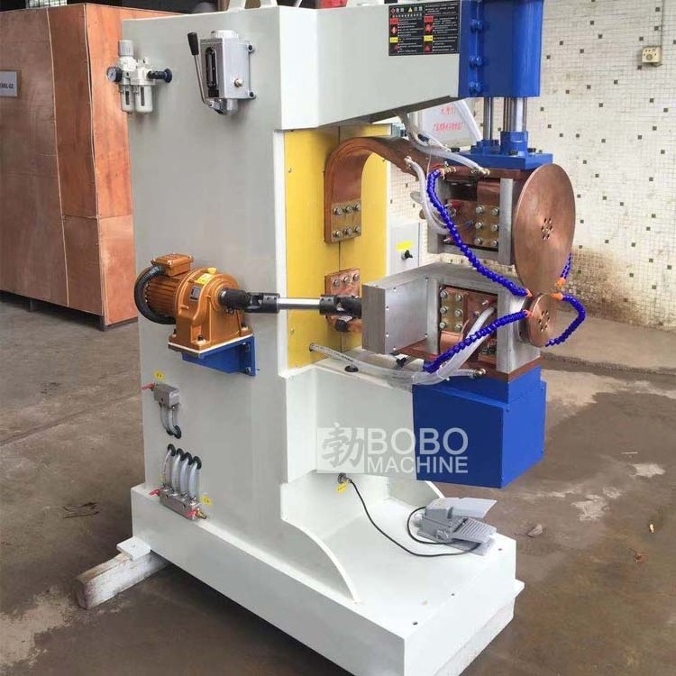 Seam welding machine means that the weldment is assembled into a lap or butt joint and placed between two roller electrodes. The roller electrode pressurizes the weldment and rotates, and continuously pulses power to form a continuous weld.