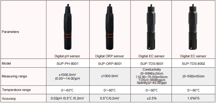 pH, ORP, conductivity, TDS, dissolved oxygen, turbidity, chlorine