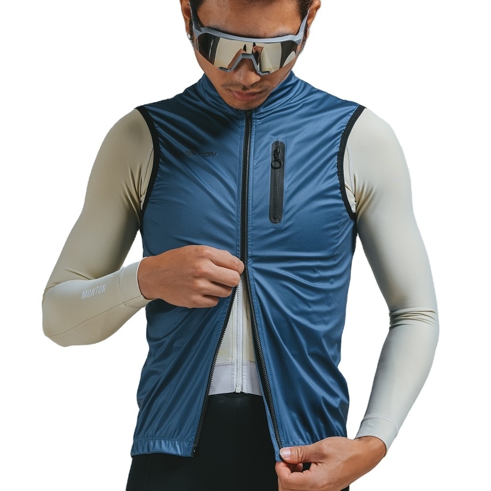 Monton mens cycling vest with pockets deep blue. Sleeveless wind gilet windproof cycling vest with back pockets.