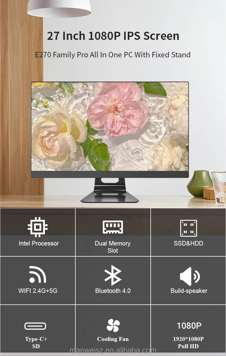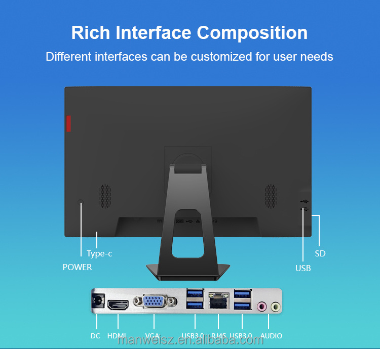 Built-in UPS Battery Optional, Super Thin Bezel-less LCD, Webcam+Mic, Fast Assemble Structure, Internal Shielding Case, Height Adjustable Stand Optional, Seperate CPU cooler vent-pipe, Suitable for high-end business office, government department, education etc.