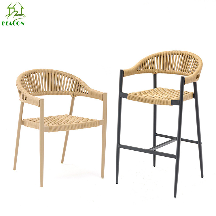 2022 new bar chair hotel garden bistro rope woven with aluminum frame chair