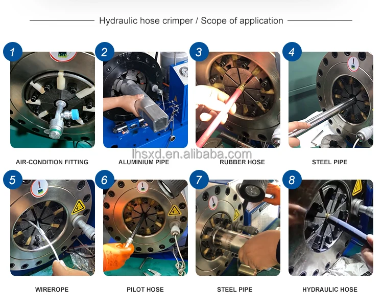 It can crimp hydraulic hose from 1/4'' to 1''. Also capable of crimping small tubes and pipes, wires and cable, etc.