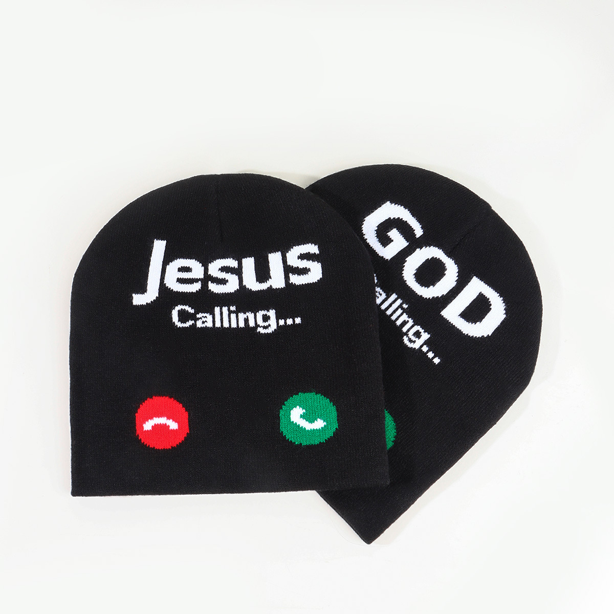 OEM/ODM Unisex Winter/Autumn Warm Acrylic Knitted Hat " GOD Jesus " Phone Call Jacquard Knitted Beanie