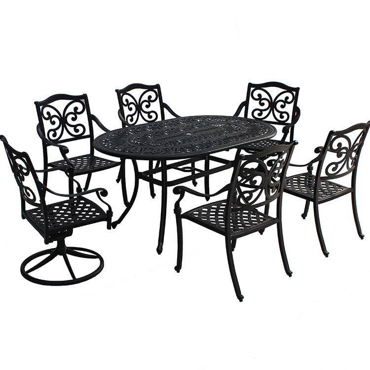Outdoor 6 seater Oval cast aluminum patio furniture Set