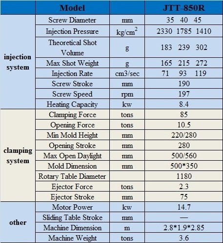 plastic rotary table injection molding machine 85T JTT-850R