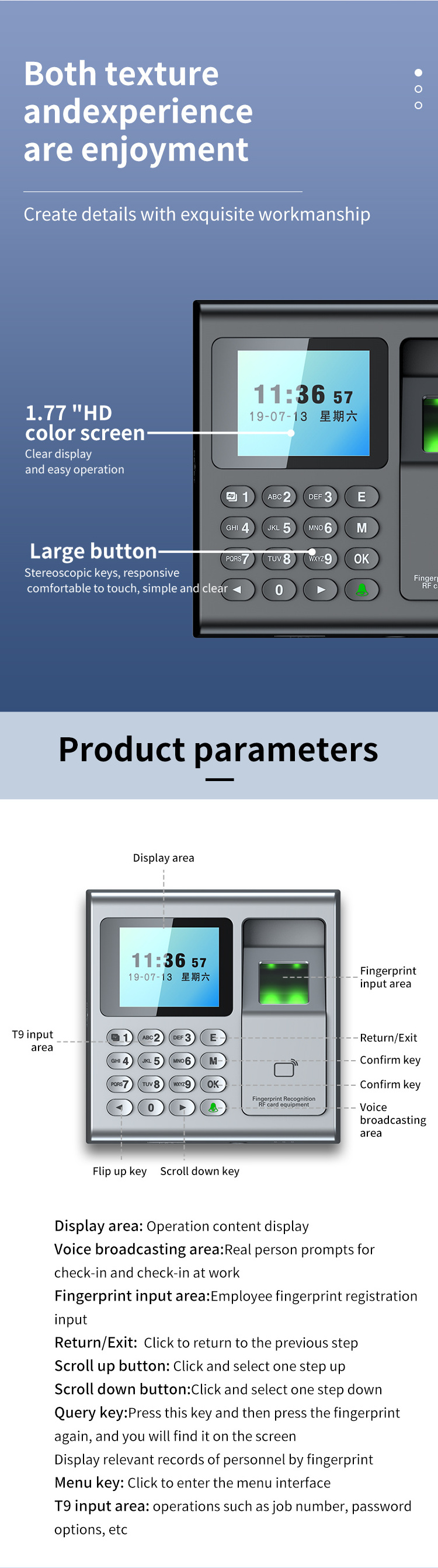 Fingerprint attendance machine Fast fingerprint identification One click report export.