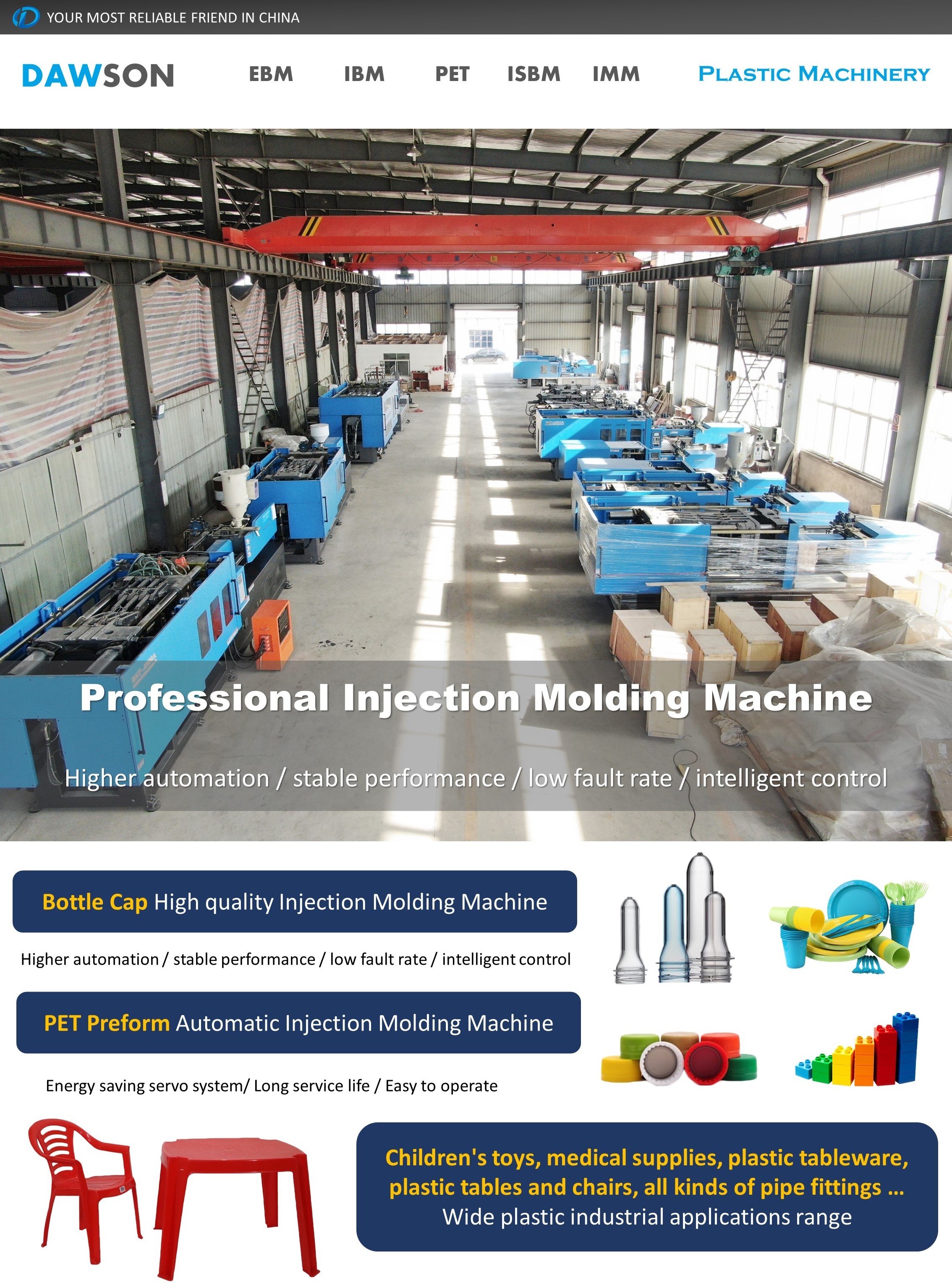 specialized for making PET preforms , caps , pails, buckets, jars, covers, lids. Special screw for PET products, all machine adapt latest Taiwan control system, Japan YUKEN hydraulic valve for highest quality standard and machine performance. We also able to provide mould designing and manufacturing to help you build up all kinds of plastic items manufacturing.
