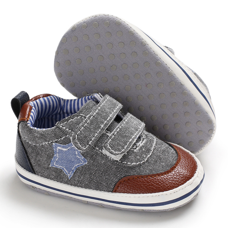 Wholesale hook&loop denim baby boy shoes anti-slip sports shoes baby casual shoes