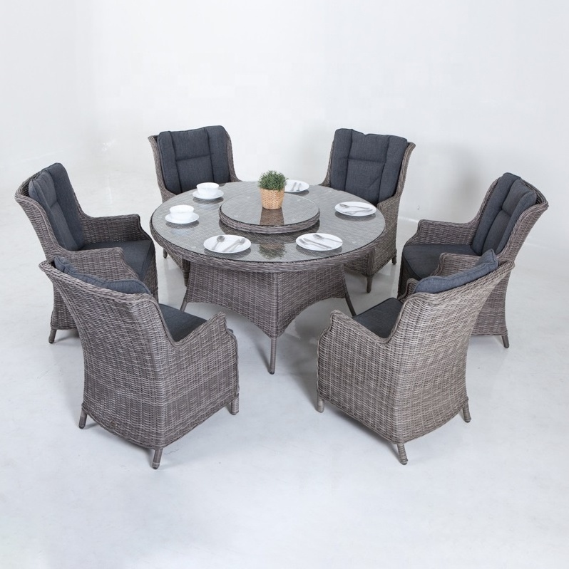 Joye Leisure Outdoor Dining Set 6 Seats Alu Rattan Garden Furniture Round Table And Chairs With Lazy Susan