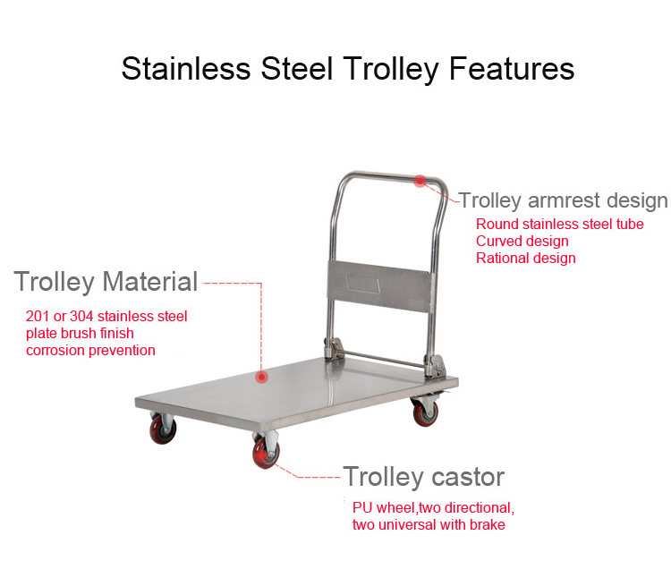stainless steel folding platform utility trolley