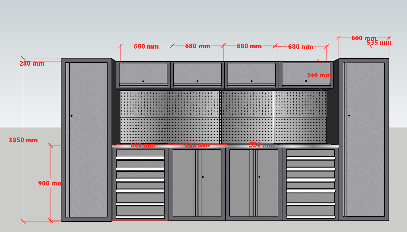 This cabinet case is designed based on customer's garage size, the best is what suit you most