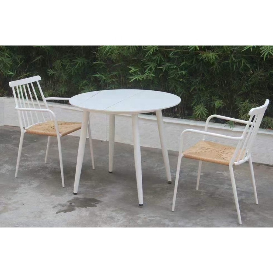 2021 Cafe outside chat chairs table set aluminum white outdoor dining table set patio furniture