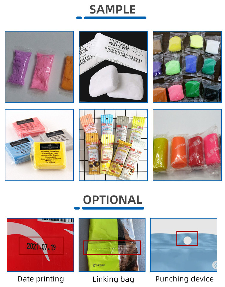 The machine is suitable for packaging modeling clay, plasticine, plasticine, syrup, candy clay,