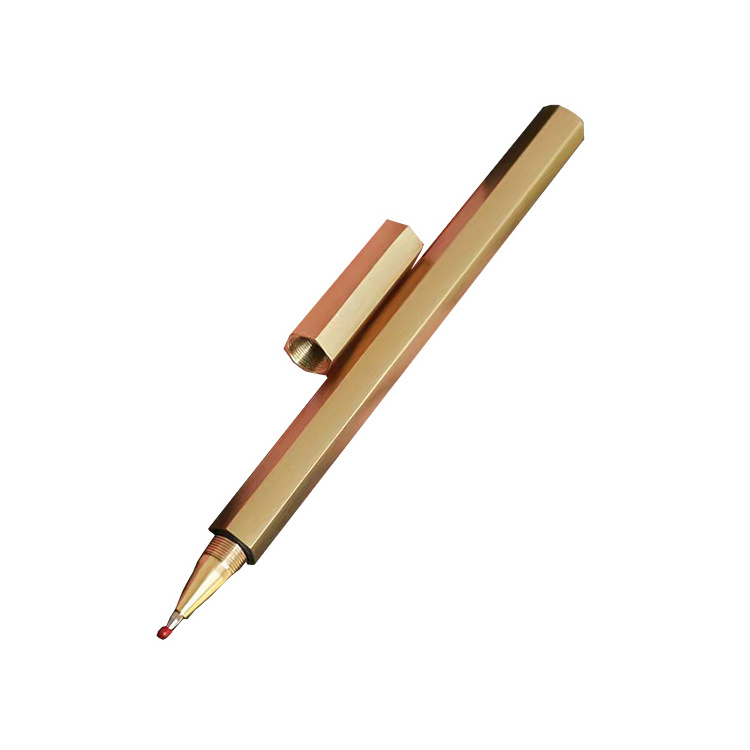 Gift Signature New Design Roller Handmade Copper Brass Pen New Year Vip Client Gifts Champagne Color Square Top Heavy Brass pen