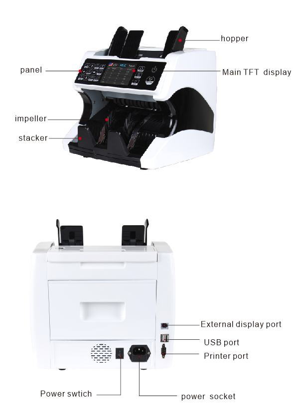 3. Serial number reading Available currency select: USD, EUR, GBP, RUB, CHF, THB, CAD, HKD, JPY, SGD, IDR, MXD, AED...up to 60currencies