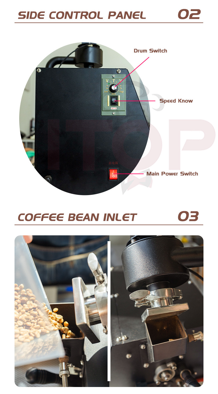 (6)Using staggered stirring, direct fire heating and hot air circulation, the coffee beans are roasted evenly and the expansion is more perfect;