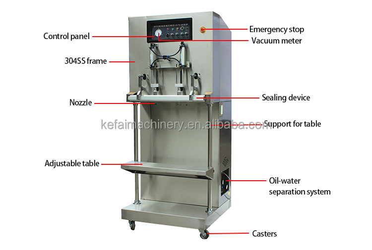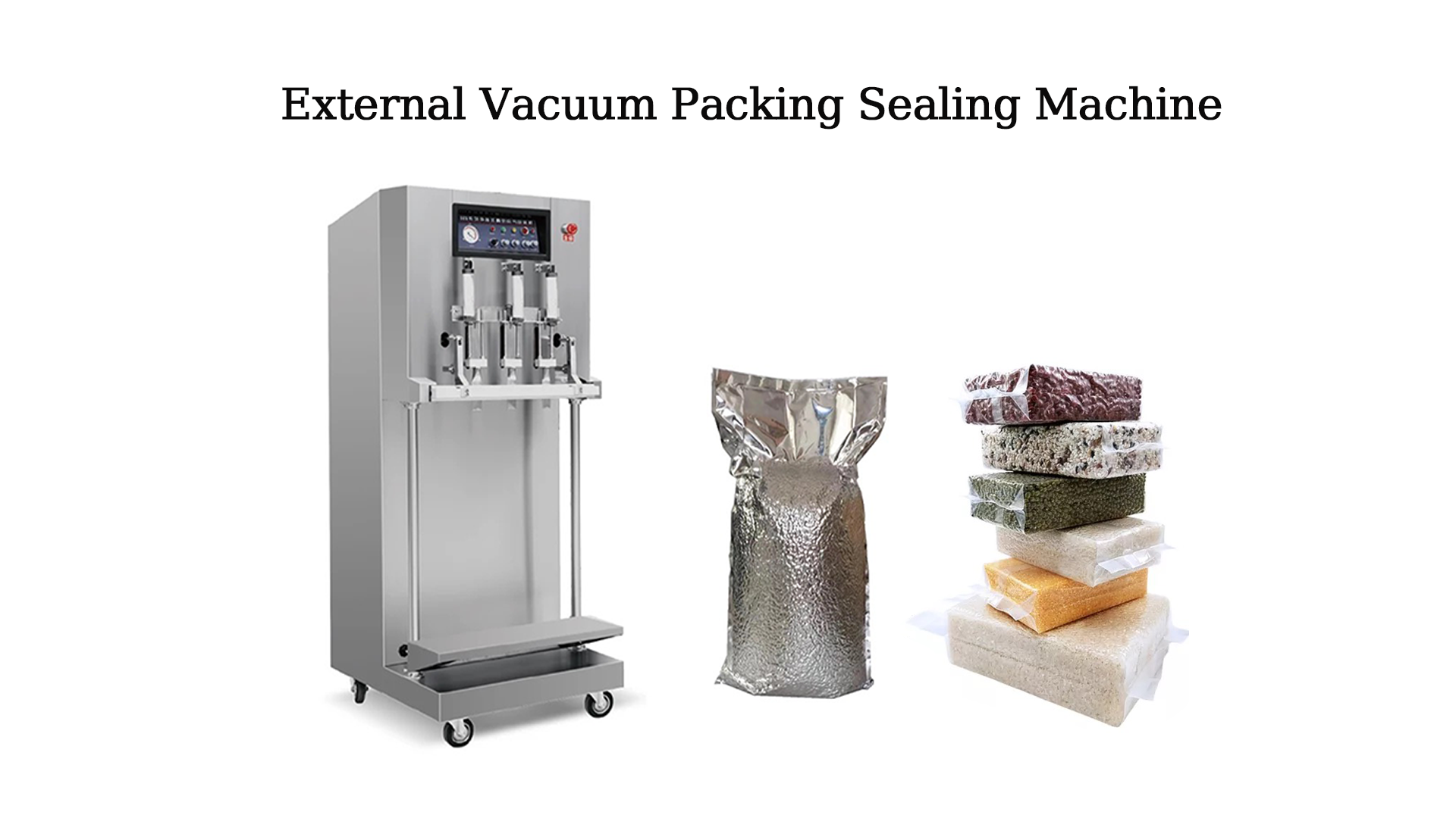 This machine is external vertical vacuum sealer. It can vacuum + gas fill + seal, and extend the shelf life of food.