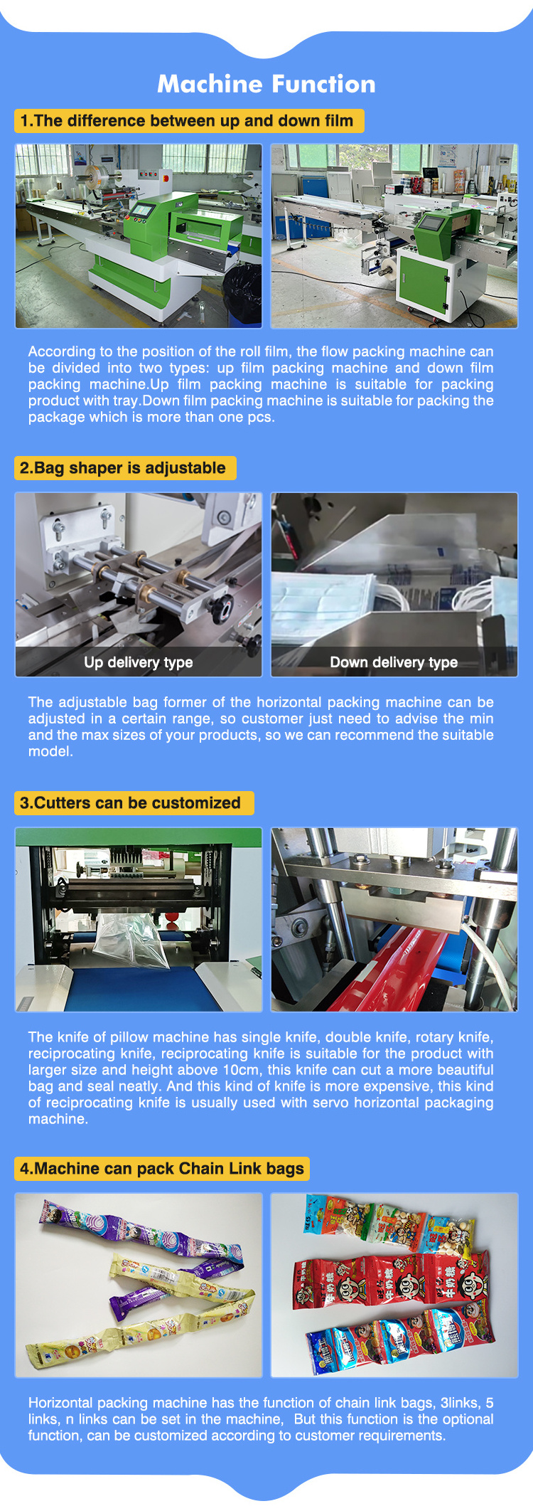 2.High sensitivity photoelectric eye color tracing ,numerical input of cutting sealing position for estra accuracy.
