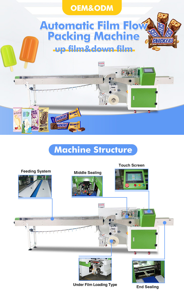 Automatic Horizontal pillow plastic bag wrapping packing ice cream ice pop lolly popsicle flow packaging machine