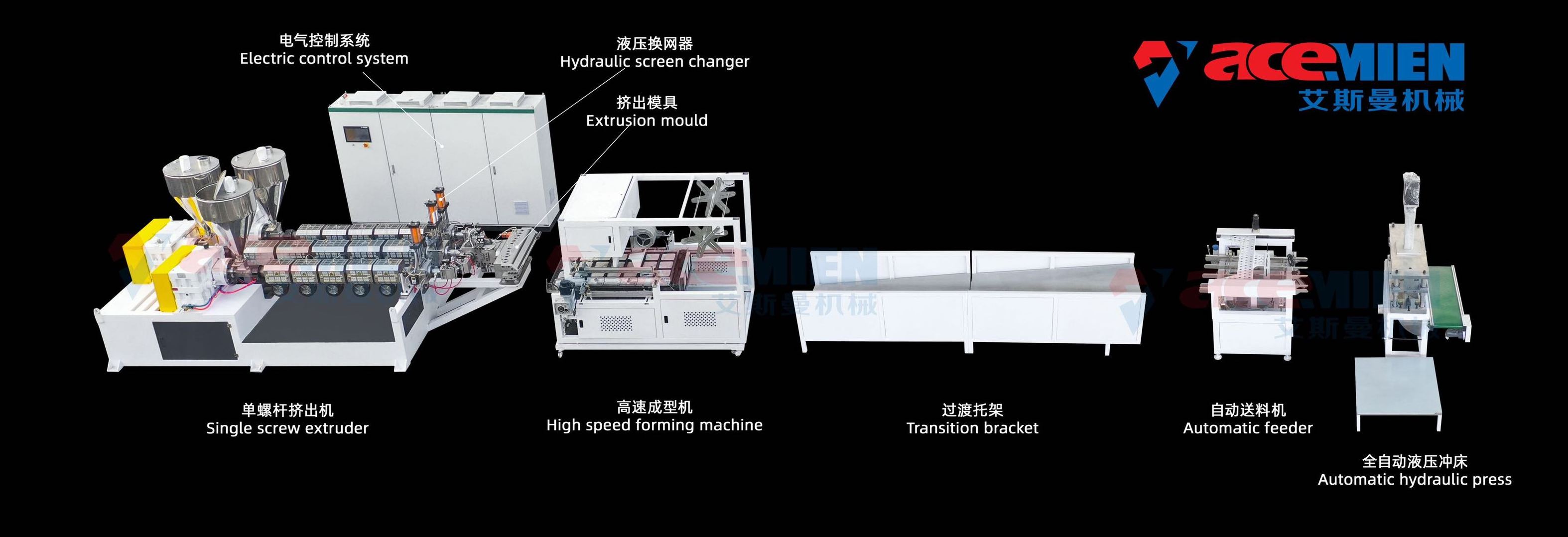 1. The fully automatic one-step blister machine refers to the use of raw material pellets (including leftover materials, fillers,etc.) directly into the equipment for production. The unit includes three parts: extrusion, molding, and punching. One-stop production.