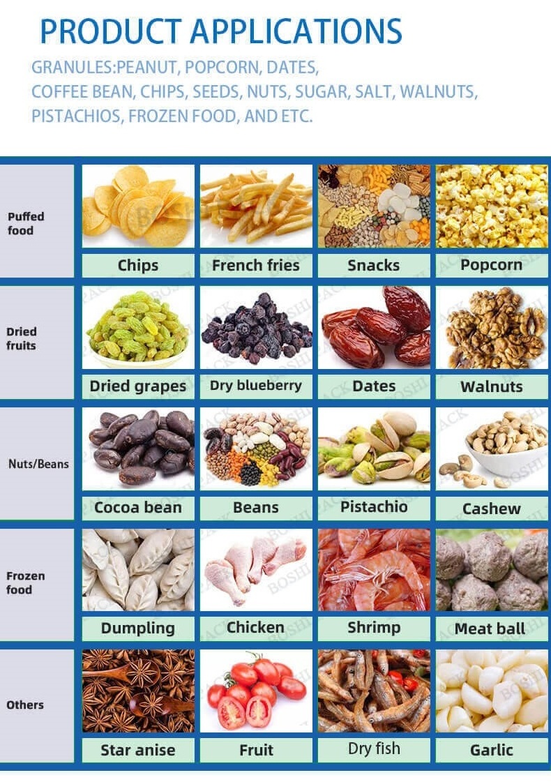 Suitable for 3 side seal bag, 4 side seal bag, handing hole bag, paper bag, stand up bag, zipper bag , doypack bag, M bag ,etc.