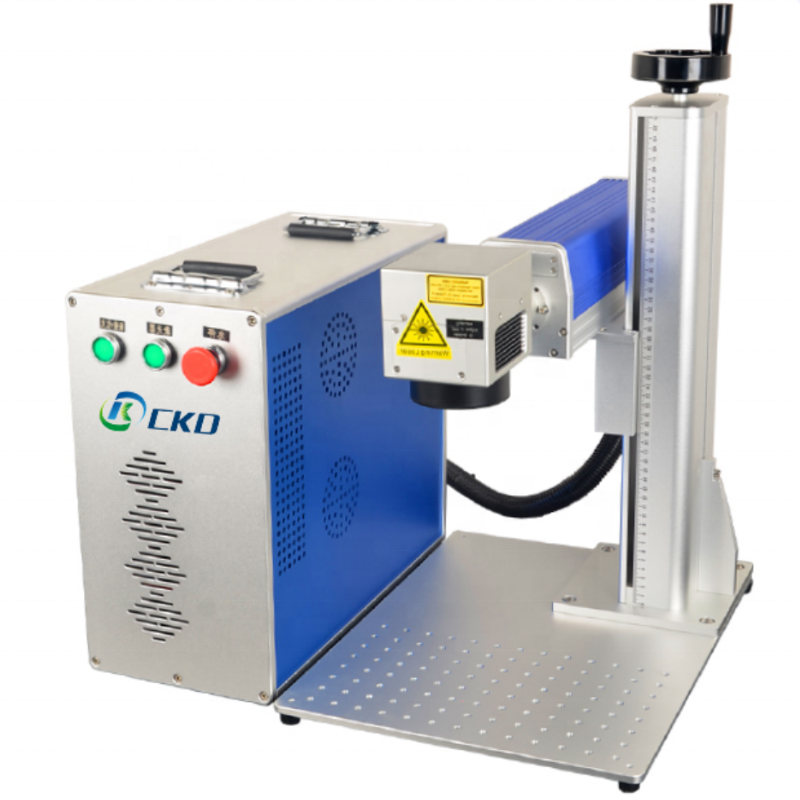 The split type fiber laser marking machine is a professional laser marking equipment that integrates optical, mechanical, and electronic technologies. It uses imported key components, has a novel design, unique structure, convenient operability, high-frequency modulation, high marking speed and accuracy, and stable performance. This device is mainly used for permanent marking of various metal and non-metal materials, with a laser wavelength of 1064nm, a laser power of 20W, a modulation frequency of 20KHz to 80KHz, a maximum scanning speed of 7000mm/s, a repeated positioning accuracy of 0.001mm, and a marking range of 110mm x 110mm. In addition, it also has safety features such as overcurrent protection, over temperature protection, and over voltage protection, and can work continuously for more than 16 hours.