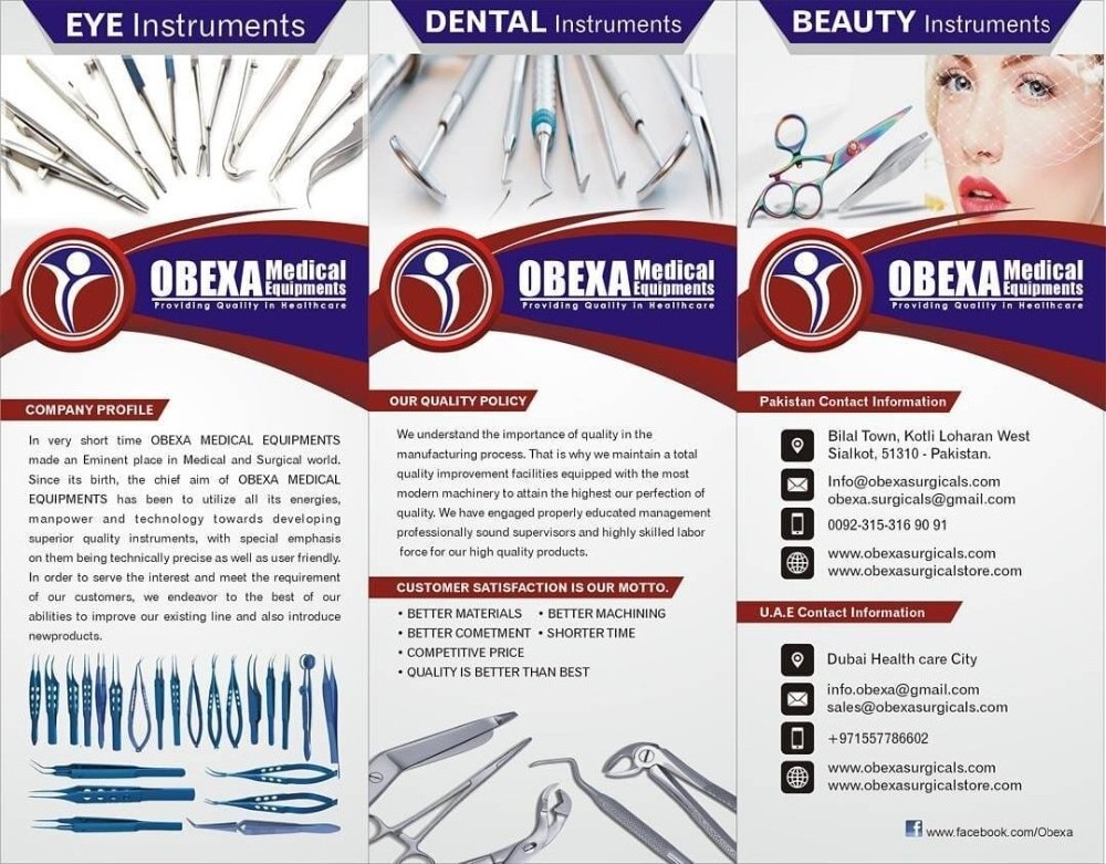 OBEXA SURGICALS is a manufacturing and export company for all kind of Surgical, Dental, Beauty, Veterinary, Arthroscopic and